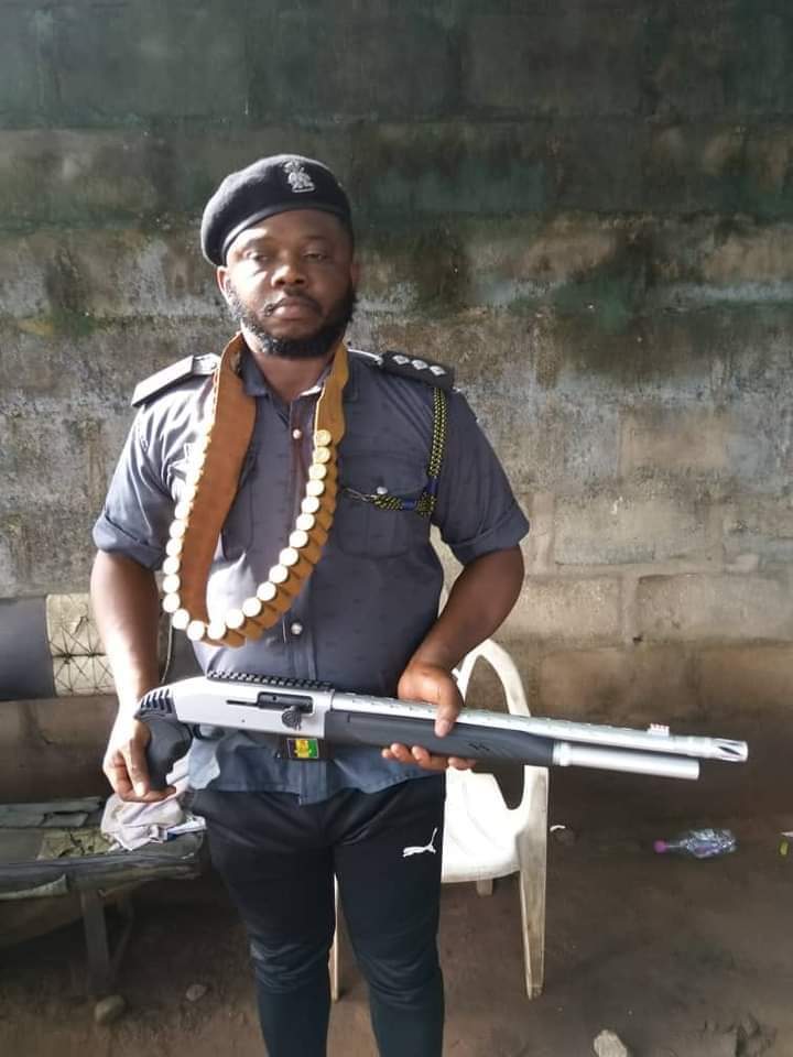 “However, at the point of arrest, one English made Pump action rifle and twenty six (26) live cartridges , a pair of Police uniform with the rank of Deputy Superintendent of Police (DSP)which was hidden in his Tinted Toyota Escalade vehicle were recovered .