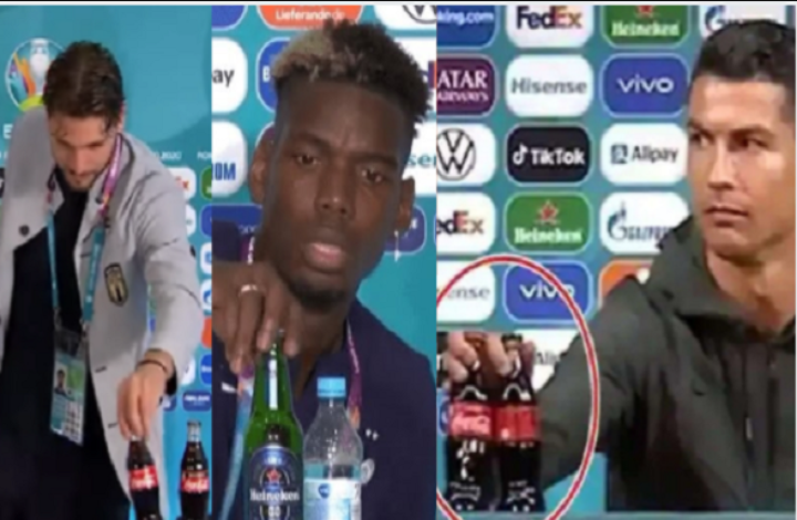 It was Christiano Ronaldo (Portugal) that started what became repeated misdemeanor when he removed bottles of Coke placed in front of him at the start of a press conference at the start of the tournament, preferring instead to have water in their stead. Buoyed by this, French national team star, Paul Pogba also ceremoniously removed bottles of Heineken Beer during his own conference while Manuel Locatelli of Italy also made a second victim of Coke by grabbing bottles off the press conference table when it was his turn to speak with the press.