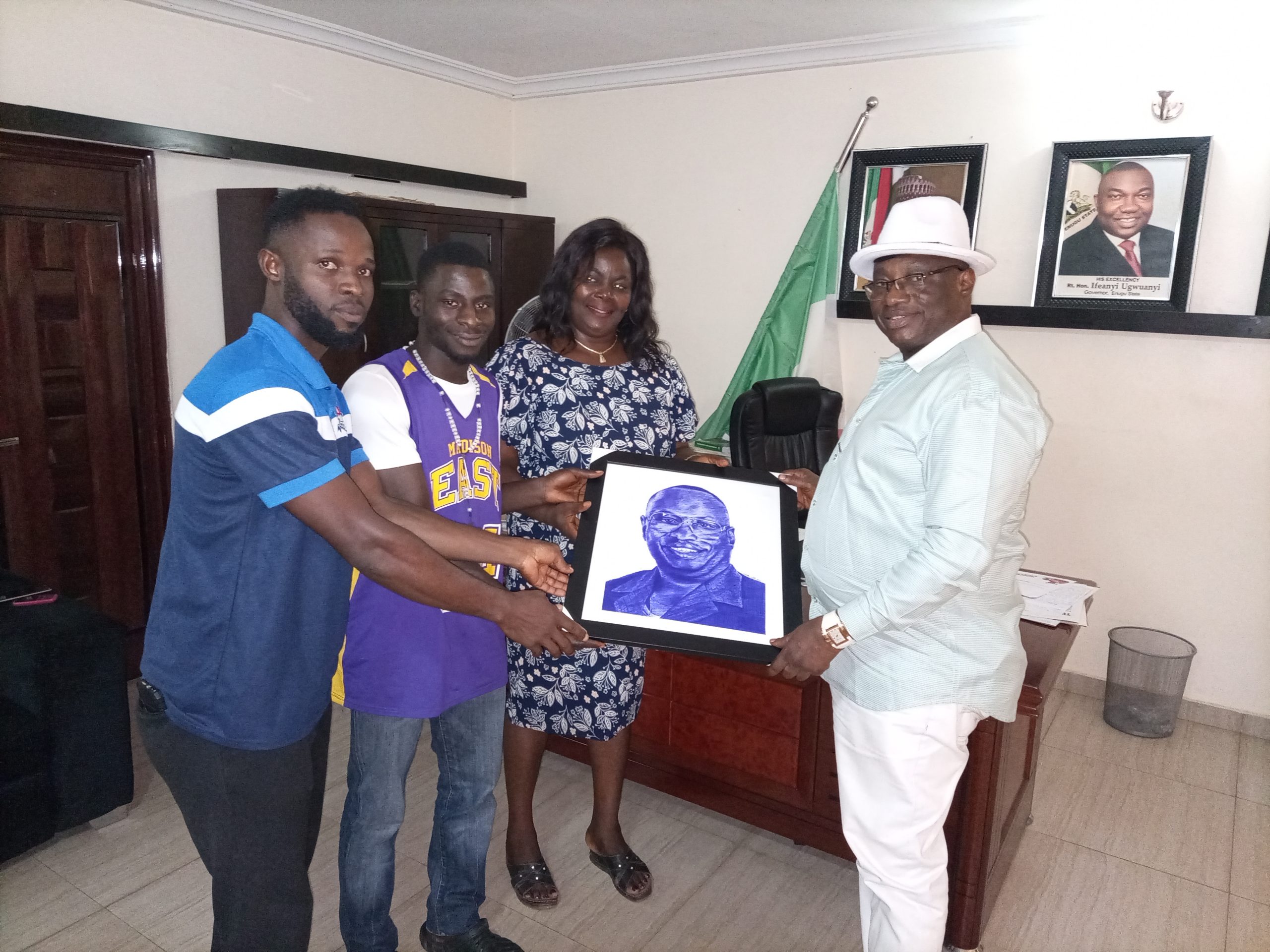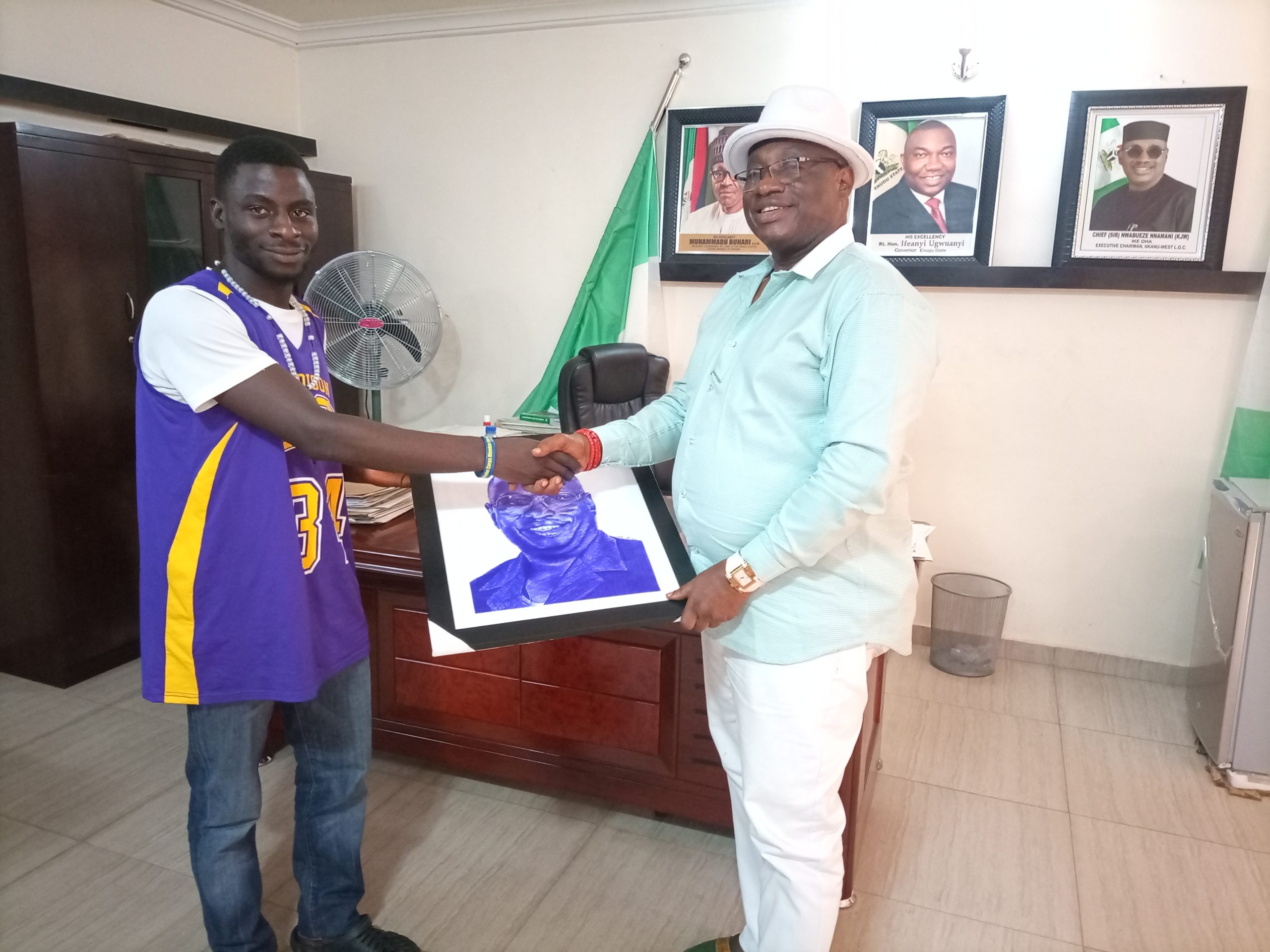 Speaking further, Noah said “watching from my office, I found it amazing that the Chairman is always cheerful each time he is leaving office for home. This means that he has peace of mind. It made me to think about presenting the artwork to him.”