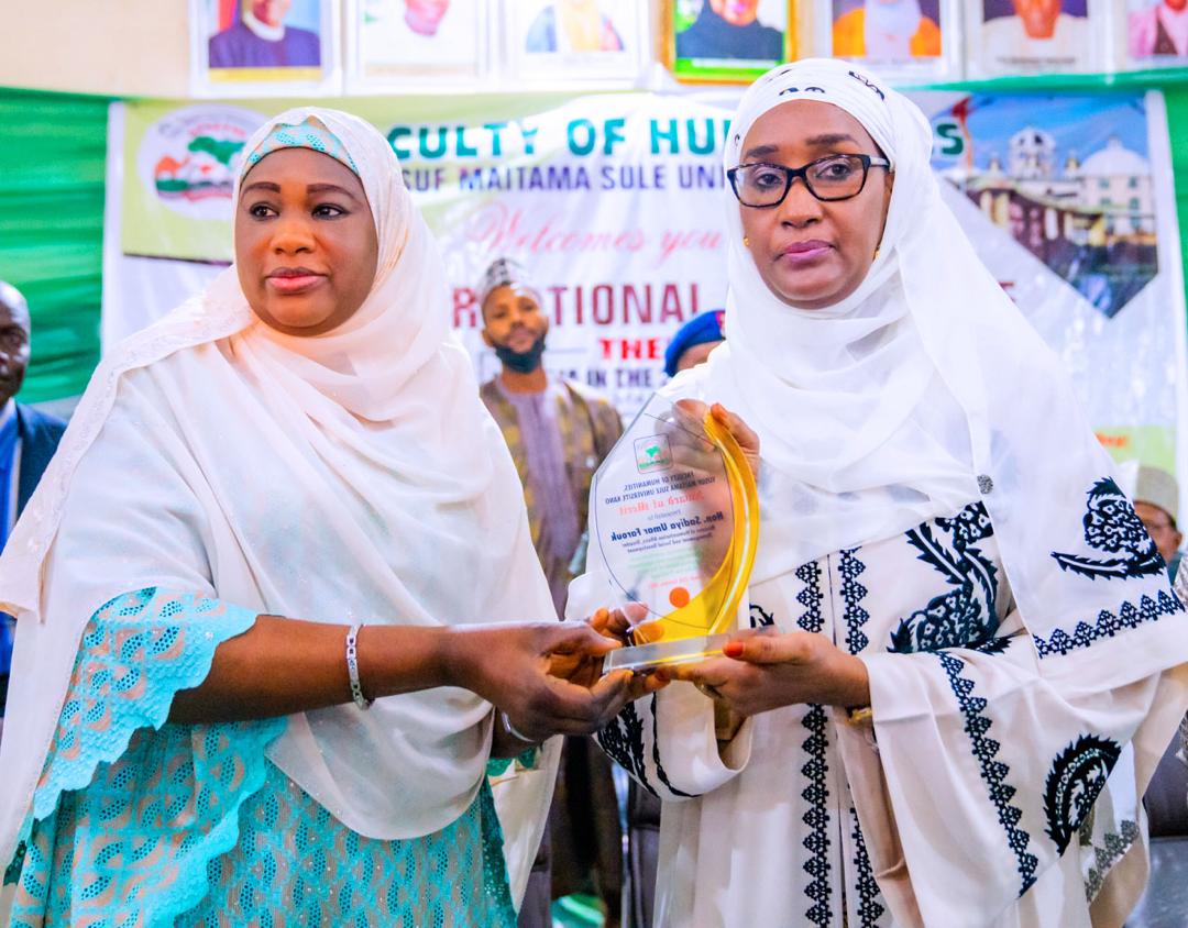The Minister of Humanitarian Affairs, Disaster Management and Social Development Sadiya Umar Farouq has received an award of merit in humanitarian work from the Yusuf Maitama Sule University, Kano state.