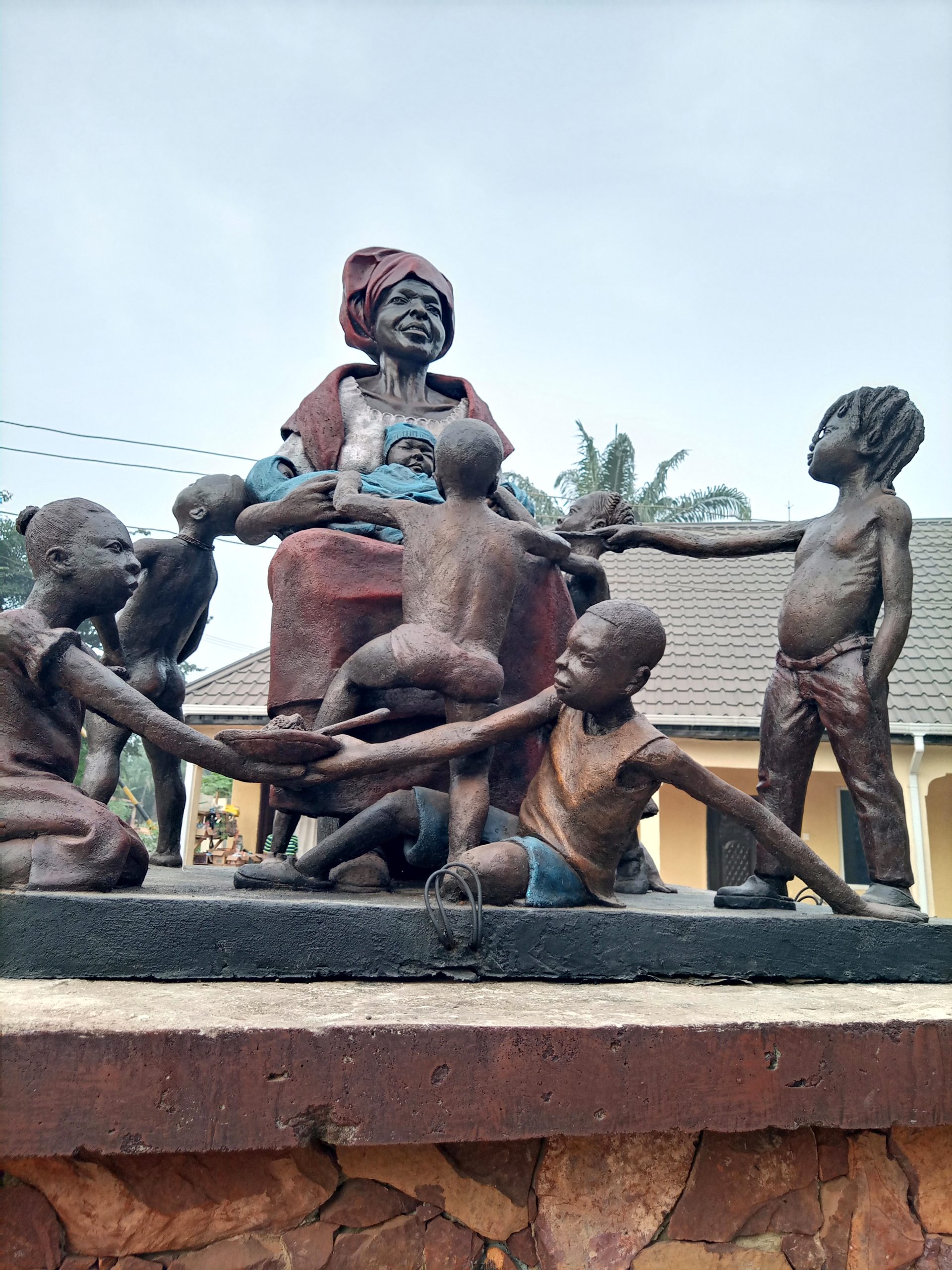 Nwonovo-Onuma the traditional birth attendant carrying triplets surrounded by other children