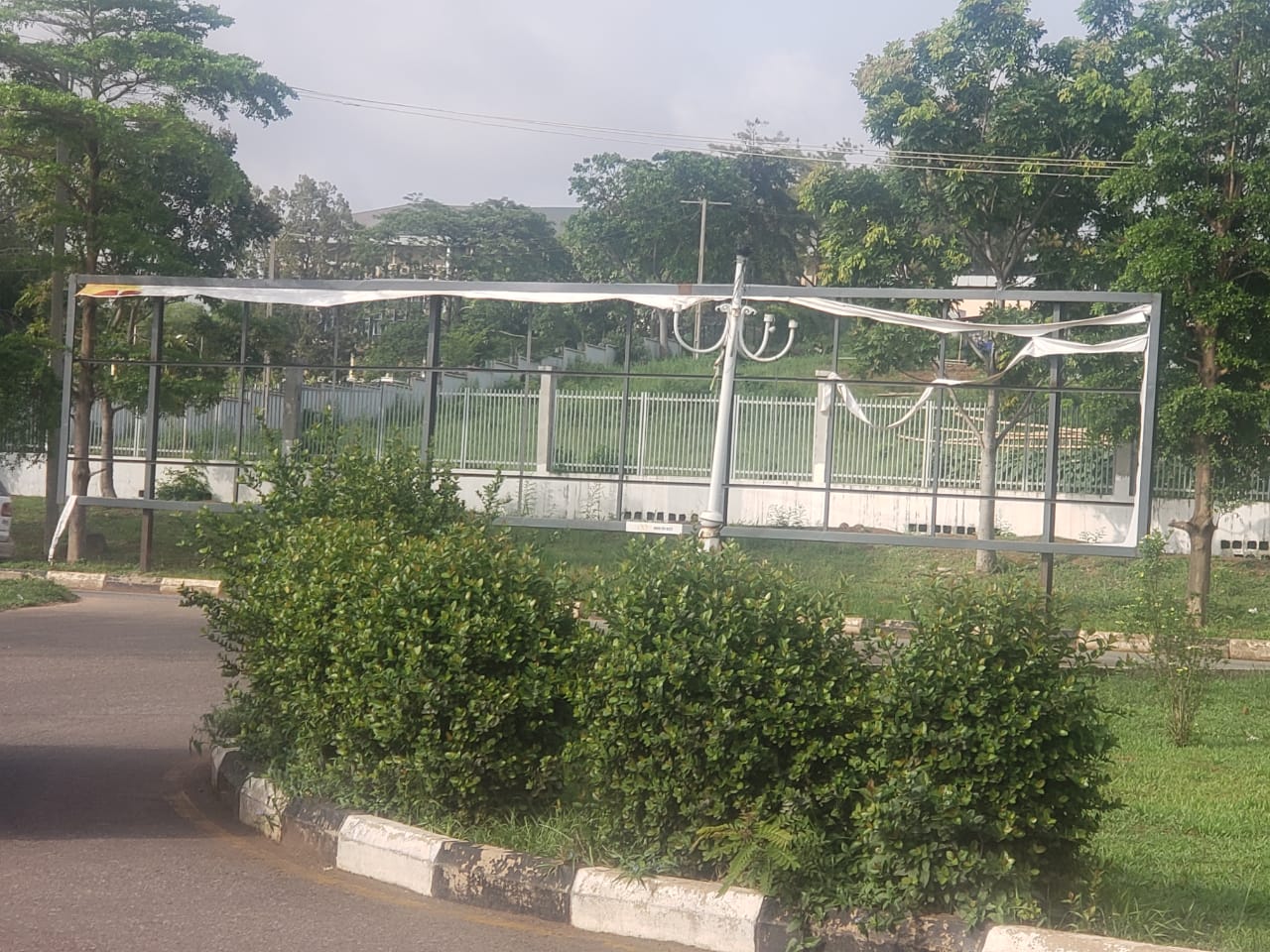 One of the imposing flex banners before being slit to shreds
