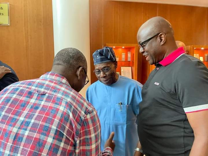 Former President Olusegun Obasanjo, on Thursday, led the Labour Party (LP) presidential candidate, Peter Obi, to a strategic meeting with the Rivers State governor, Nyesom Wike, in London, United Kingdom.