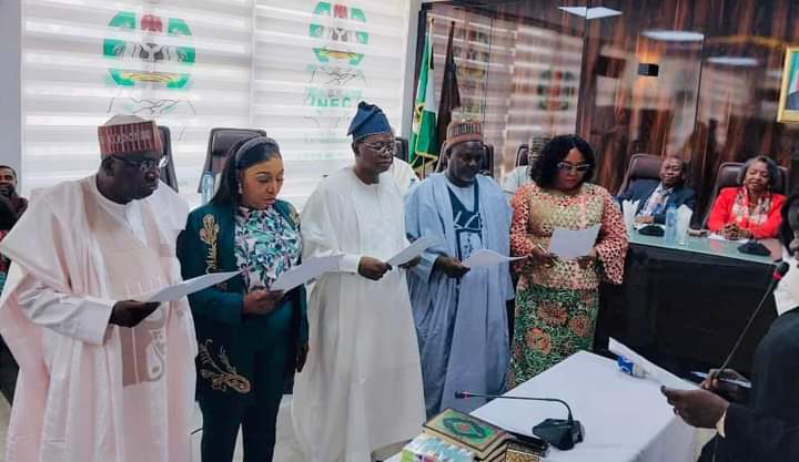 The Hon. Chairman of the Independent National Electoral Commission, INEC, Prof. Mahmood Yakubu, today swore in 19 Resident Electoral Commissioners (RECs), urging them to avoid visits to Government Houses and not hold unofficial meetings with politicians.