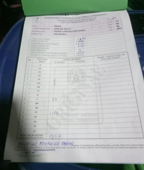 - At the Central Schol polling unit in Owo, Mr Mbah’s hometown, there were 256 accredited figures, yet an absurd 856 votes were returned to the PDP. At the Ishienu Town Hall, Ugbawka 1, no agent of any party, including the PDP, signed the so-called Statement of Result on the governorship election which, of course, awarded victory to the PDP candidate.