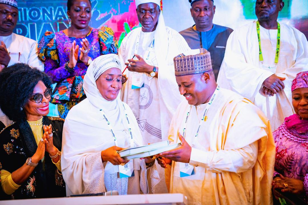 At the close of the 1st Nigerian International Humanitarian Summit organized by the Ministry on Friday in Abuja, Umar Farouq presented two booklets documenting her service in the Ministry to the Permanent Secretary. She expressed her gratitude to the Ministry directors, staff, and those in her office for their unwavering support during her term as Minister of Humanitarian Affairs, Disaster Management, and Social Development.