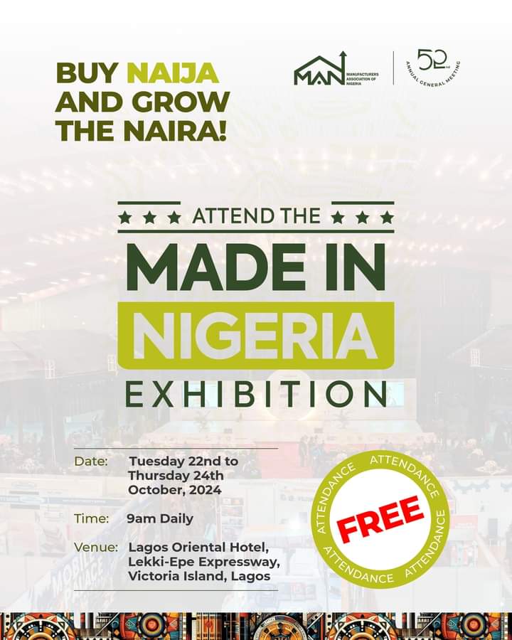 Mark your calendar for October 22-24, 2024, and join the celebration of Nigerian excellence in manufacturing at the Oriental Hotel, Victoria Island, Lagos. The event kicks off at 9:00 AM daily. GMTNewsng
