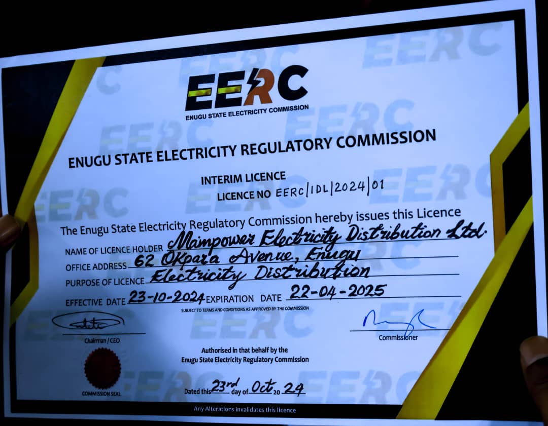 The Enugu State Electricity Regulatory Commission (EERC) has officially licensed Mainpower Electricity Distribution Limited, a subsidiary of the Enugu Electricity Distribution Company PLC (EEDC), to manage electricity distribution within Enugu State. This significant transition marks the beginning of a new phase in power distribution, shifting regulatory oversight from the Nigerian Electricity Regulatory Commission (NERC) to EERC.
