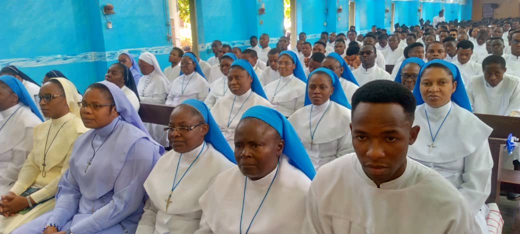 Commissioner for Local Government, Rural Development and Chieftaincy Affairs, Deacon Okey Ogbodo (R), representing the governor of Enugu State, Dr. Peter Mbah, and a cross-section of Reverend Sisters at Bigard, Sunday