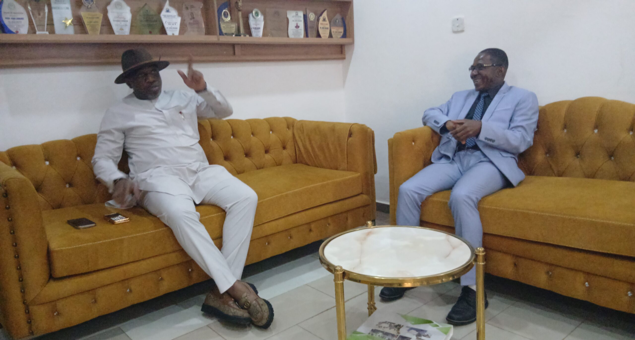 L-R: Senator Kelvin Chukwu in a strategic discussion with Vice Chancellor Prof. John Emaimo at the Federal Allied University of Health and Sciences, Enugu – charting a new path for entrepreneurship-driven healthcare education. (Photo credit: Senator Chukwu’s Media)